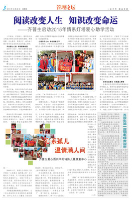 閱讀改變?nèi)松? 知識(shí)改變命運(yùn) ——齊普生啟動(dòng)2015年情系燈塔愛心助學(xué)活動(dòng)