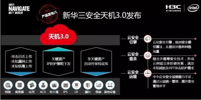 據(jù)了解,華三天機3.0具備了云安全引擎、云安全查殺、云安全運維等功能,能夠構(gòu)建創(chuàng)新性的動態(tài)安全能力中心,并能夠提供整體安全態(tài)勢監(jiān)控、安全業(yè)務快速部署、云安全防御、云端運維等一體化的安全交付能力。